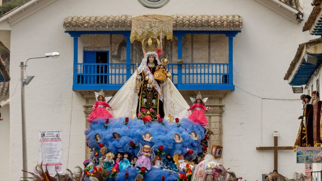 La Virgen del Carmen, conocida cariñosamente como Mamacha Carmen, es la figura patrona de los mestizos en la región andina de Cusco. Su culto tiene raíces en la época colonial, cuando su imagen fue adoptada por los pobladores, quienes incorporaron elementos de la cosmovisión andina, dando lugar a una devoción sincrética que perdura con fuerza cada mes de julio en Paucartambo