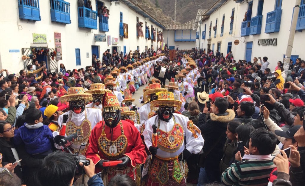 Los "carguwasis" (casas de los mayordomos) ofrecen platos típicos como cuy asado, kapchi de habas, rocoto relleno y moraya. Mientras tanto, las calles se llenan de música, cerveza local y cohetazos, creando una atmósfera festiva que fluye día y noche